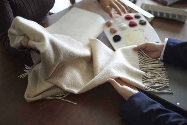 「こんなマフラーを作りたい」という具体的なイメージをお持ちの方、「どんな商品が作れるのか」確認したい方など、是非ショールームにお越しください。